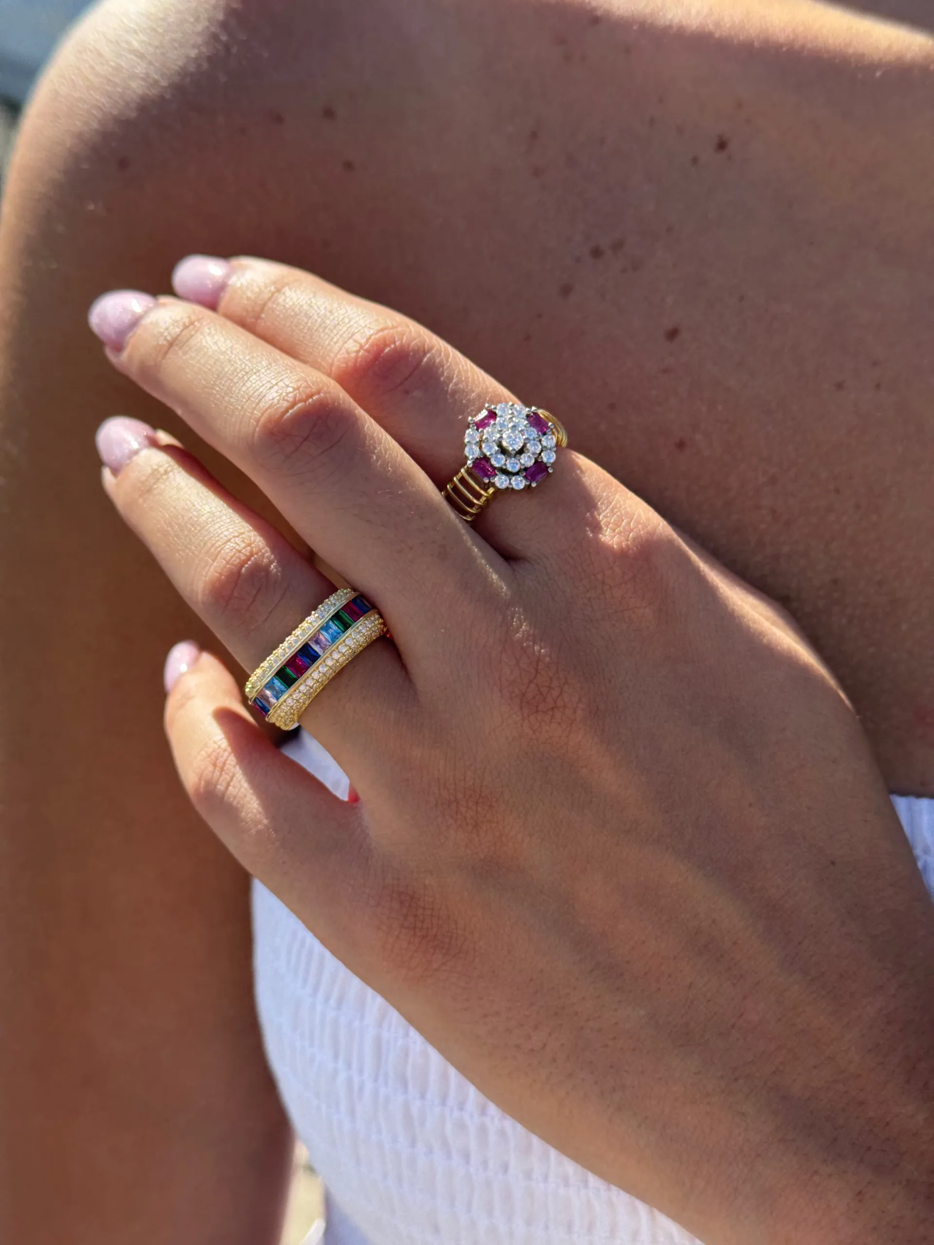 Vibrant fuchsia stones that sparkle with every move, adding a bold, feminine touch to your style.