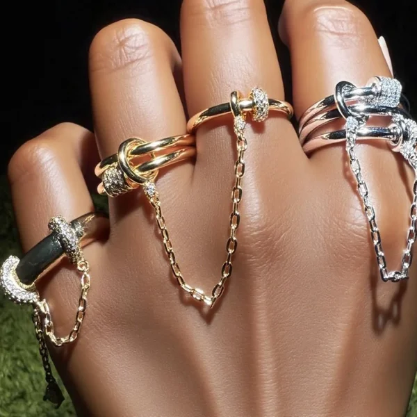 An open ring featuring teardrop and square stones, blending modern style with timeless elegance.