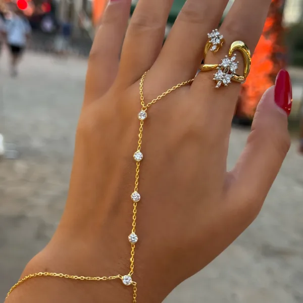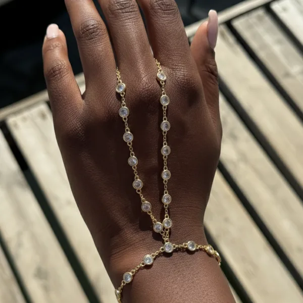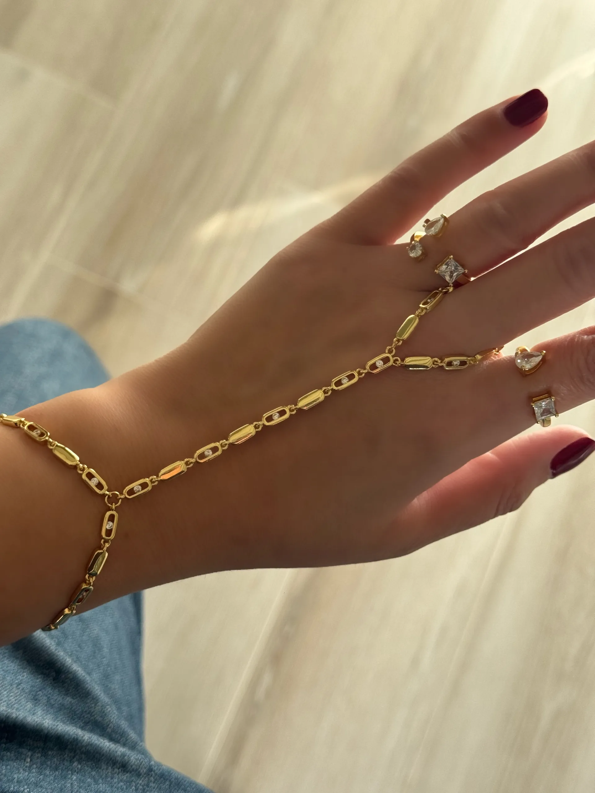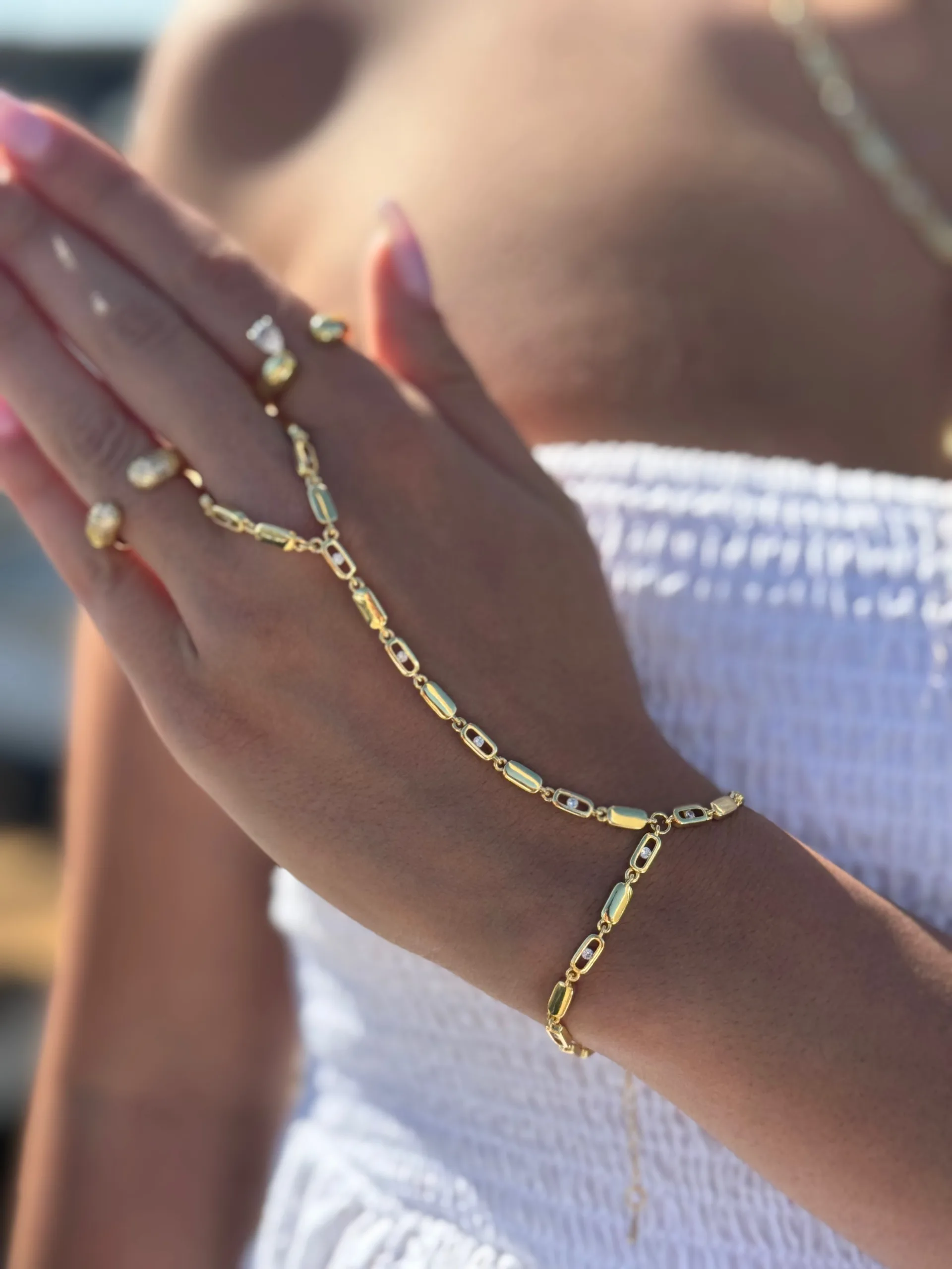 Sleek gold-tone handchain with modern linked design, adding effortless elegance to any look.