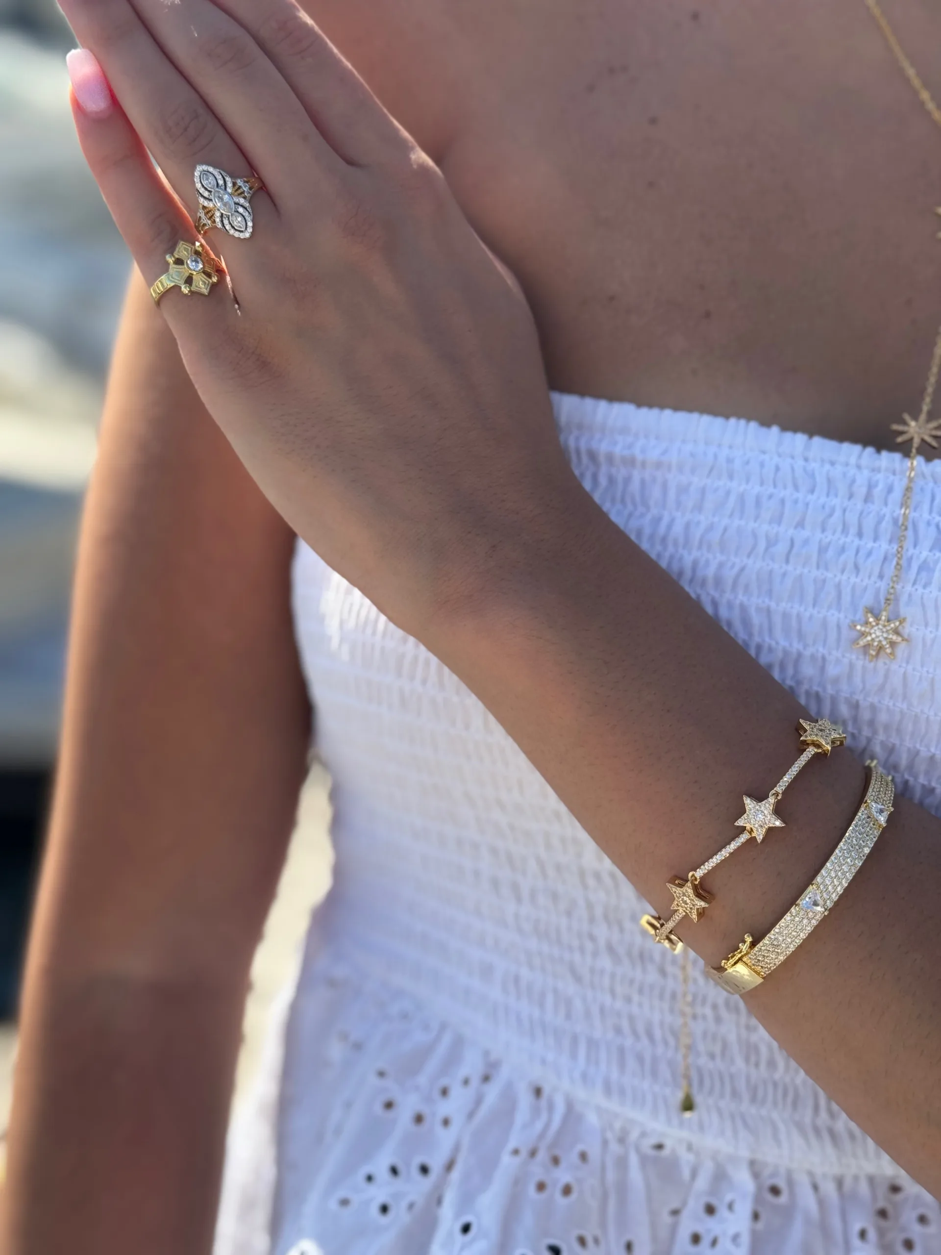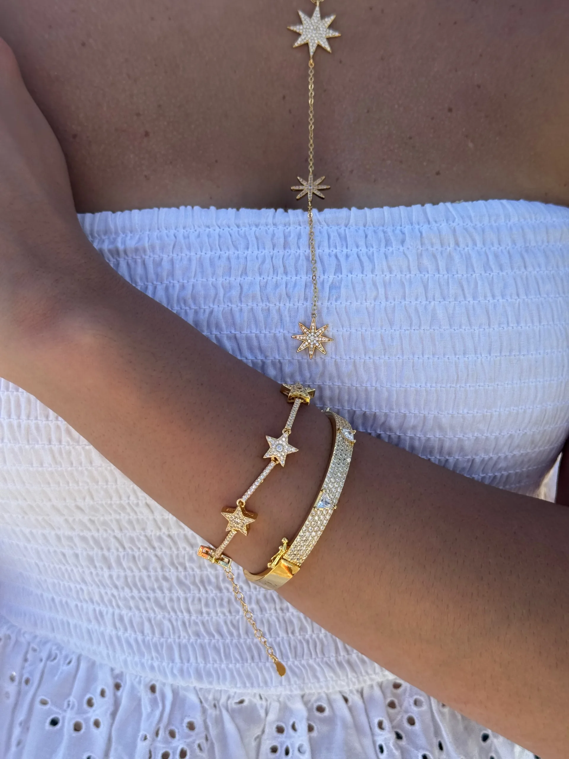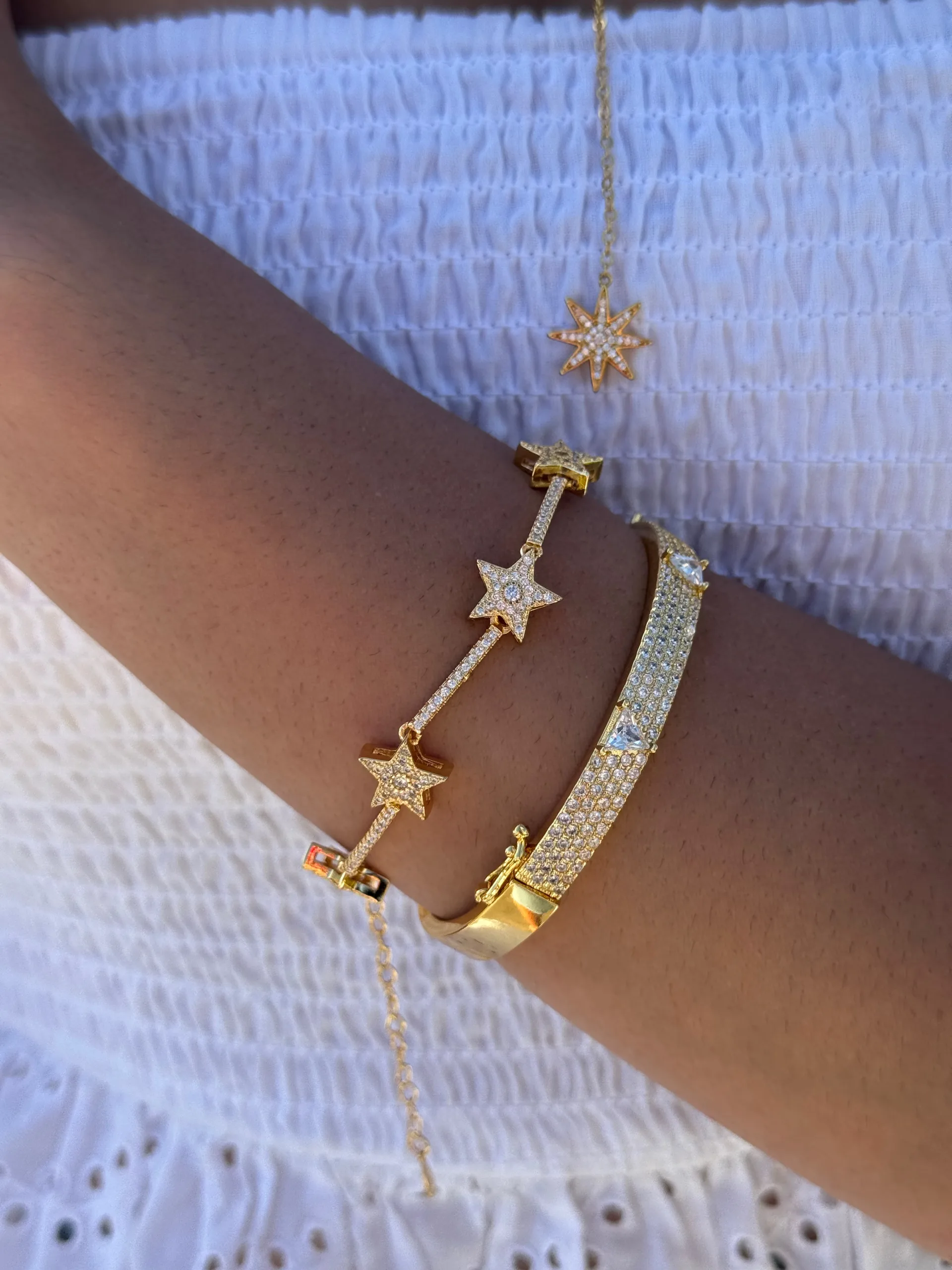 Bracelet adorned with sparkling star charms for a celestial touch.
