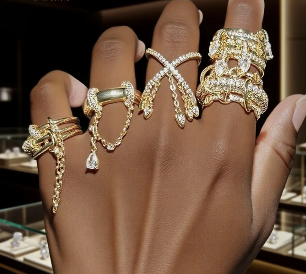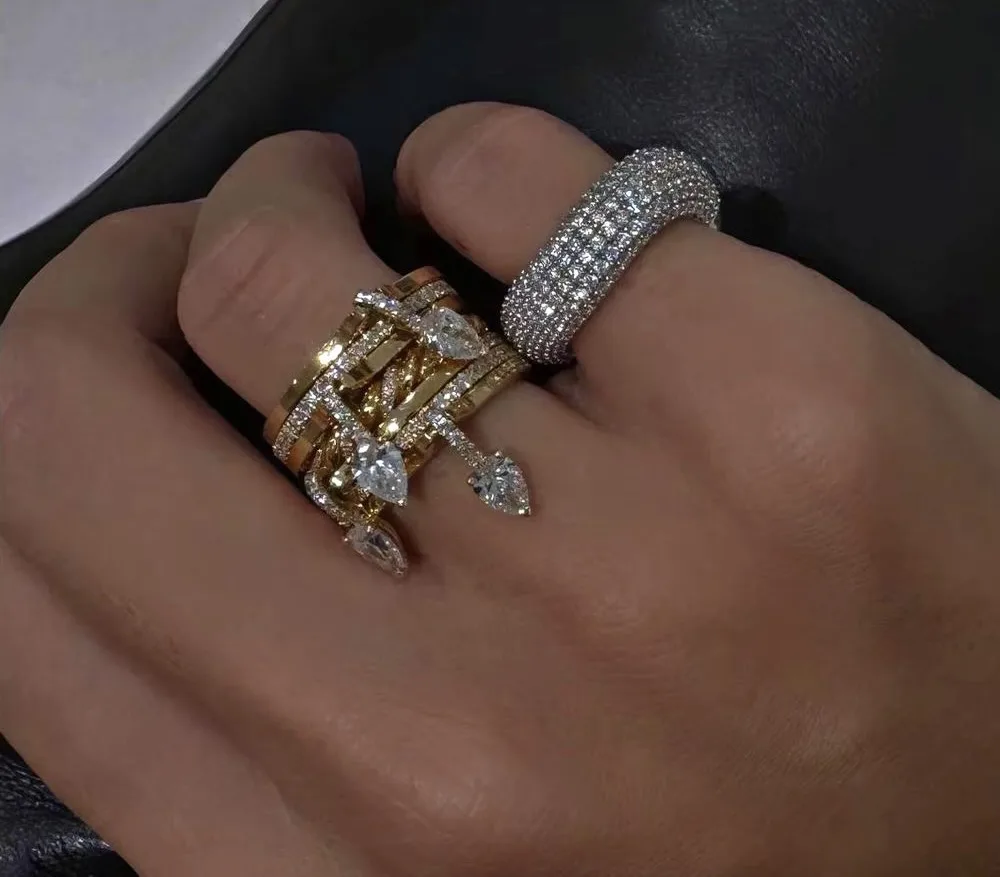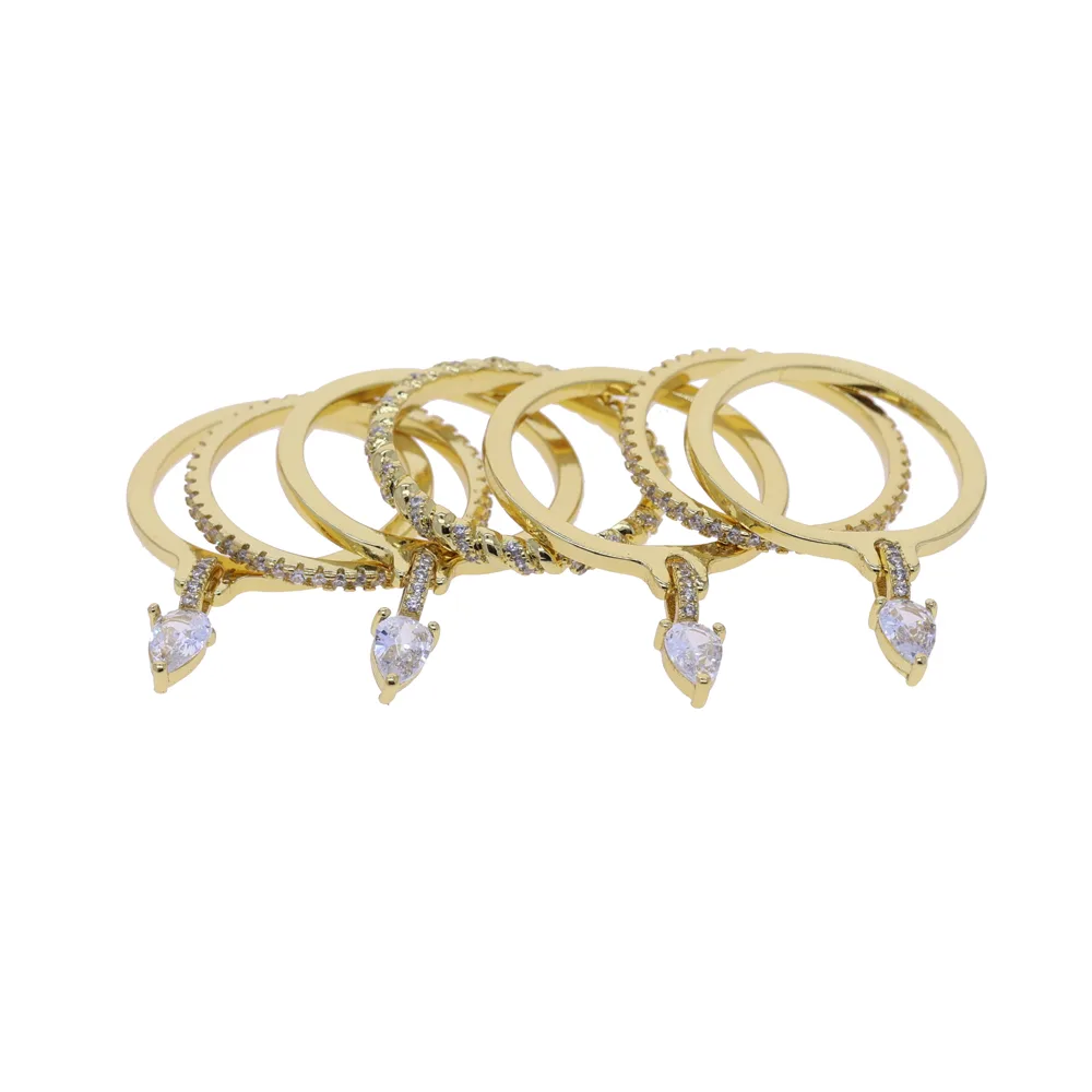 Seven stacked teardrop ring for a chic layered look.